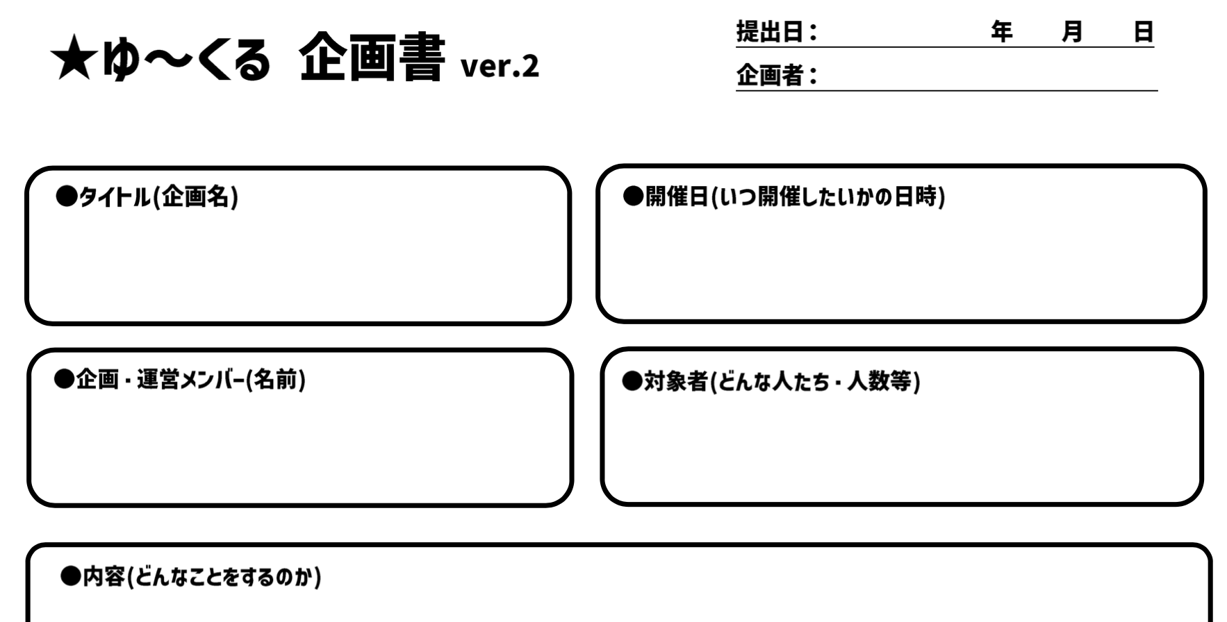 ※この企画書テンプレートはゆ〜くるの企画のためのものです。目的外使用はおやめください。