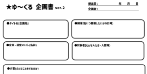 ユースセンター「ゆ〜くる」では、自分でやりたい企画・イベントがあれば「ゆ〜くる企画書」を書いてスタッ...